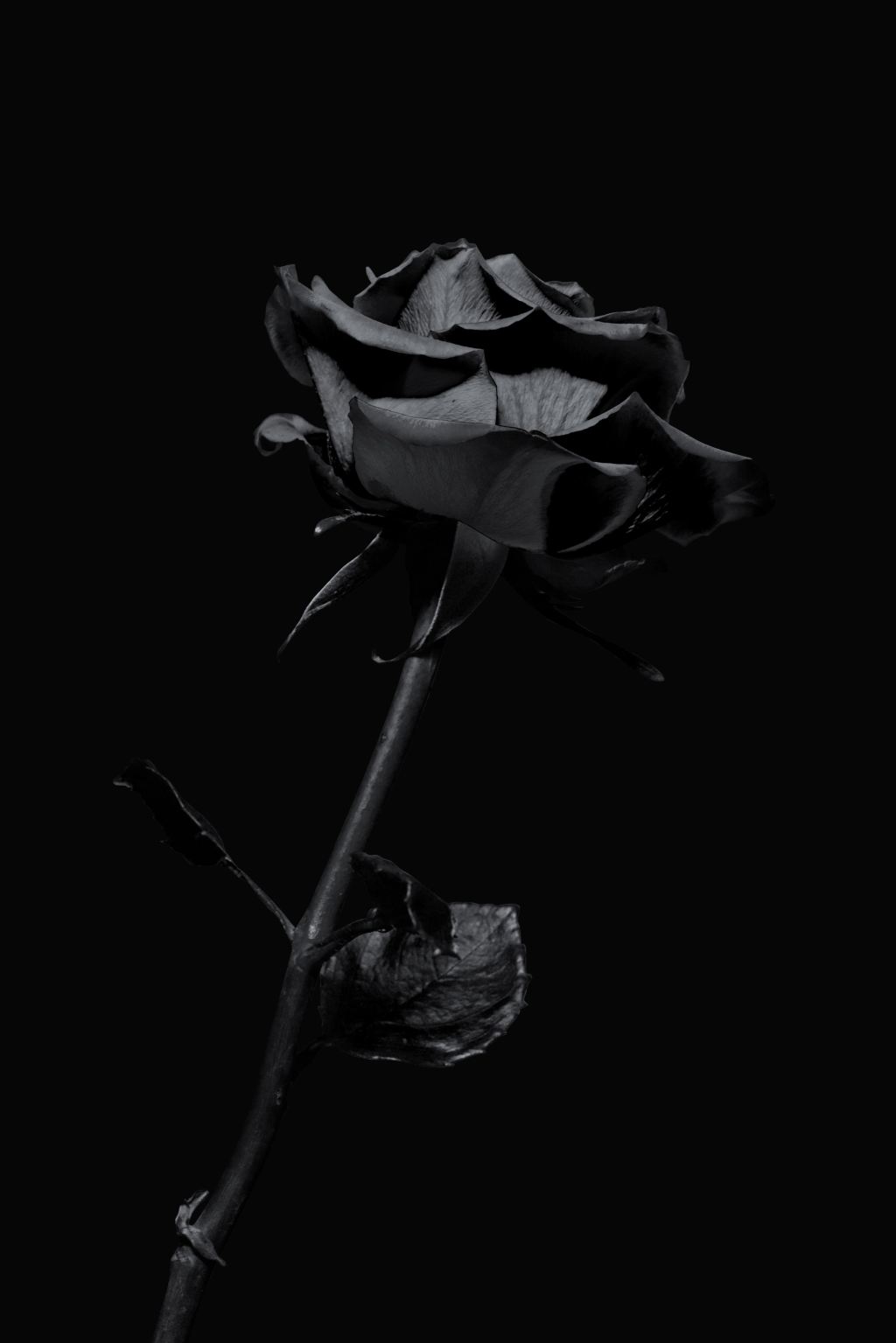 검은 장미 한 송이가 고개를 떨군다